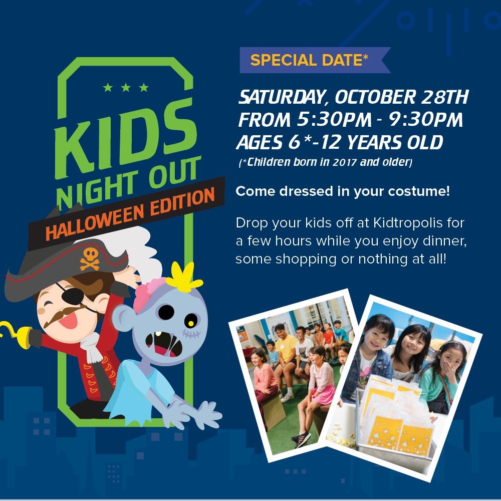 Join us for a Halloween themed Kids Night Out! Come in costume for a night of fun and treats!