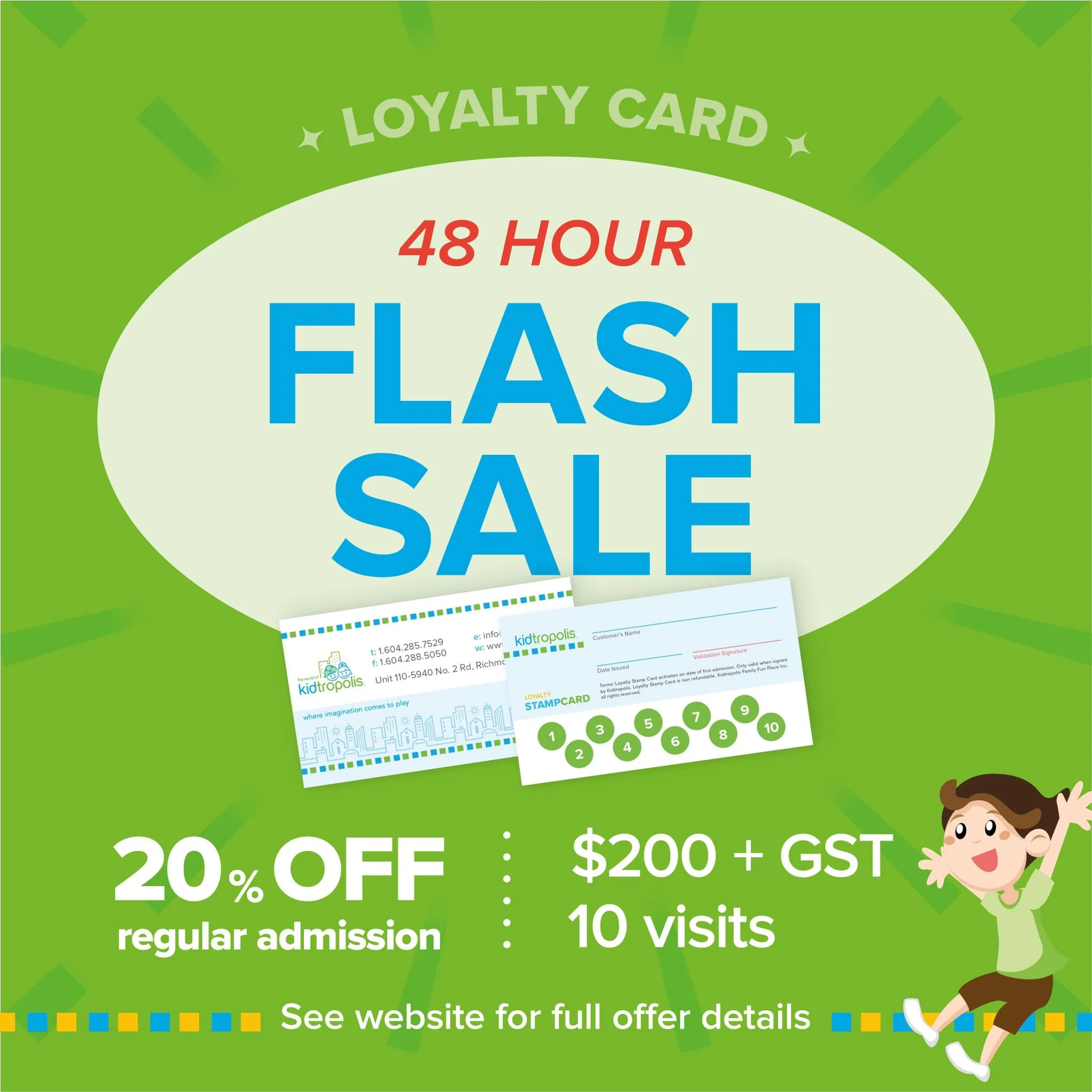 *Disclaimer: Flash Sale Offer only valid for 48 hours starting from Monday, May 8 2023 at 12:00PM to Wednesday, May 10, 2023 at 12:00PM. Offer is $200 (+GST) for a World of Kidtropolis Loyalty Card. Each Loyalty Card includes 10 child admissions, and each child admission includes admission for one adult only. Upon purchase, Loyalty Card will be available for pick-up at the World of Kidtropolis front desk. Loyalty Cards cannot and will not be mailed to the purchaser. Loyalty Cards should be treated like cash, it is non-refundable and non-replaceable if lost or stolen. Offer cannot be transferred or exchanged for cash value. Offer may change without notice and cannot be combined with any other offers. Contact Kidtropolis for more details. Offer expires May 10, 2023 at 12:00pm.